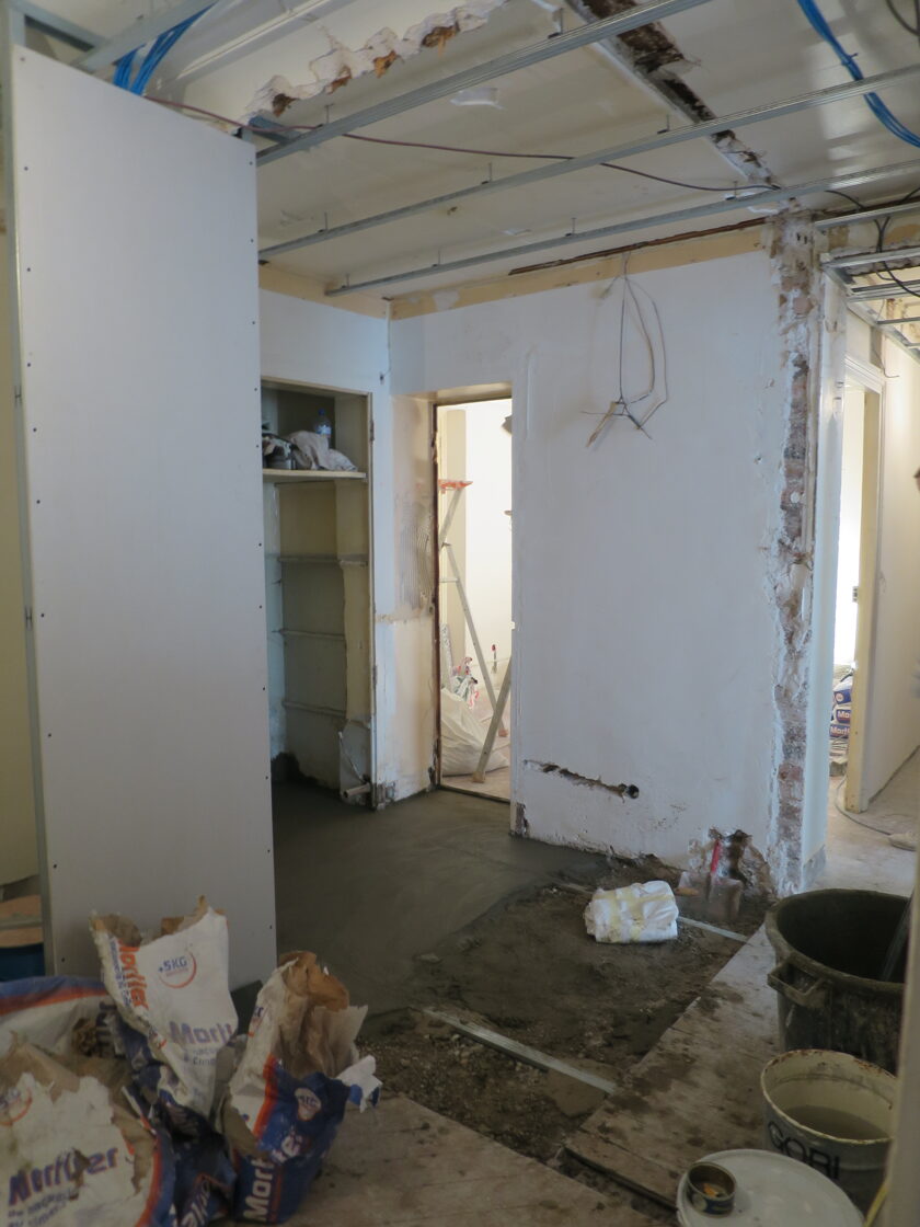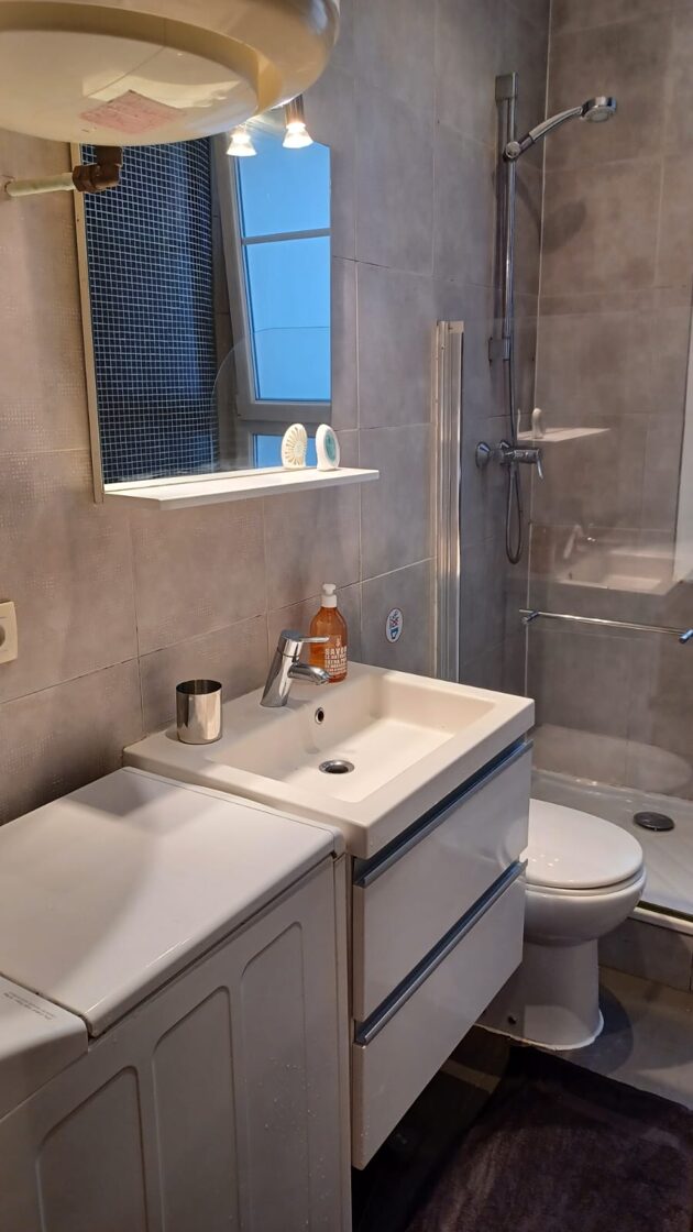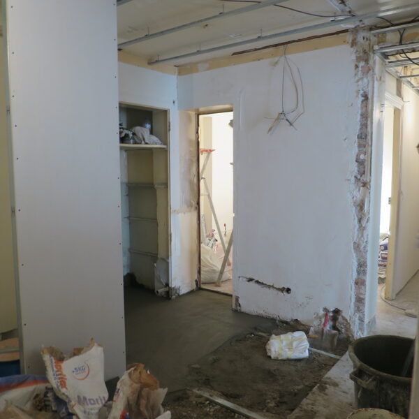 Situé au 3è étage d'un immeuble de la fin des années 1970, cet appartement n'avait fait l'objet d'aucuns travaux depuis 40 ans. Il a nécessité une rénovation totale (plomberie, électricité, sols, plafonds, murs) et le réaménagement de plusieurs espaces pour correspondre aux exigences de confort actuelles. La salle de bain a été repensée: remplacement de la baignoire par une douche et des placards; intégration d'un espace buanderie. La cuisine a été agrandie pour accueillir un plan de travail plus grand et des rangements supplémentaires. Enfin, un bureau (pouvant servir de deuxième chambre) a été créé.
