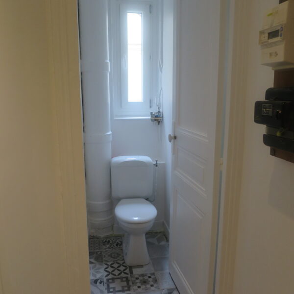 Situé au dernier étage d'un immeuble haussmannien, ce studio est la réunion de deux chambres de service qui étaient dépourvues d'alimentation en eau et d'évacuation. Le propriétaire disposait d'un budget limité à 15000€. Le défi a consisté à créer un espace de vie confortable et aéré, en intégrant une salle de bains/wc, une kitchenette, un coin couchage et un coin repas. Les murs, les plafonds, le sol ont été entièrement refaits à neuf, les fenêtres changées et un système d'extraction et de ventilation installé dans le faux plafond.